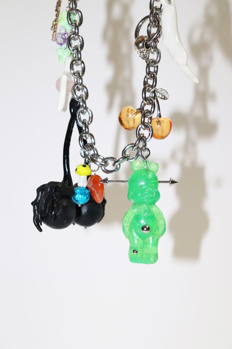 Composition: stainless steel, various pearls, ceramic and varnished resin pendant.