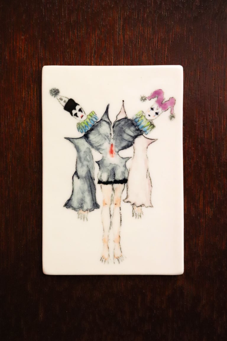 Drawing on porcelain (sold with the frame in tinted Meranti).