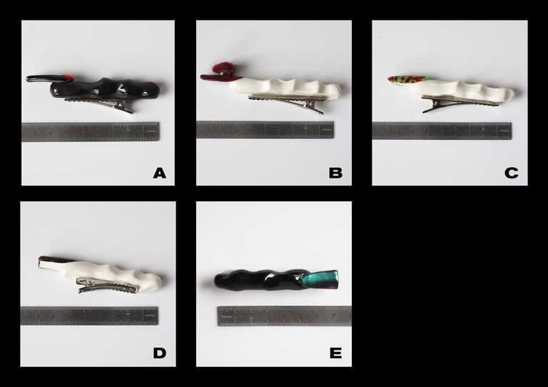 Medium clips in porcelain or black clay, variable dimensions see images.